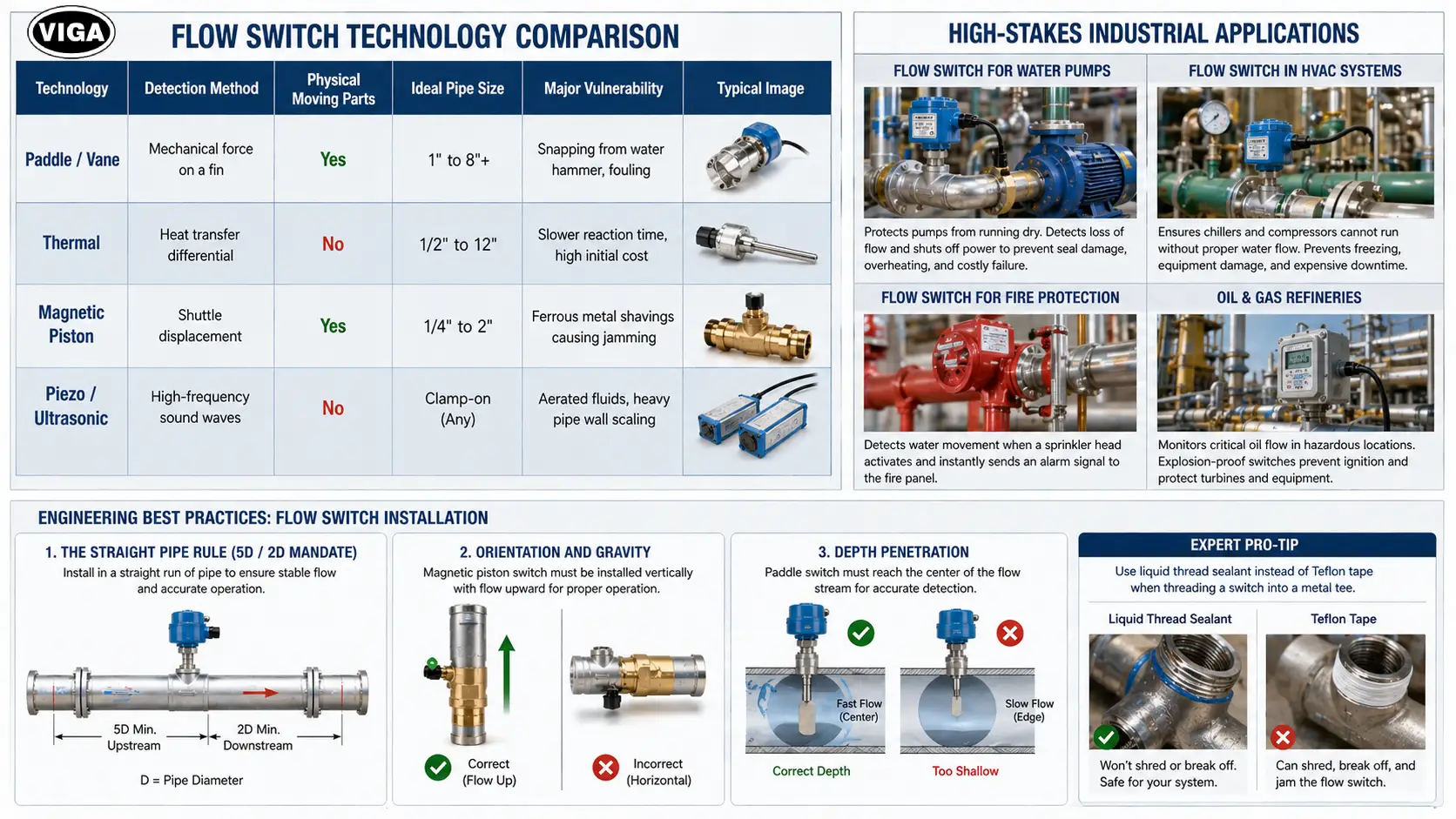 If you manage heavy infrastructure, you know that relying solely on software to monitor your piping is a gamble. You need physical, mechanical fail-safes. Flow switches provide exactly that. They are binary. They do not care about trend lines or data logs. They care about one thing: is the fluid moving fast enough to keep this equipment safe? If the answer is no, they kill the circuit.