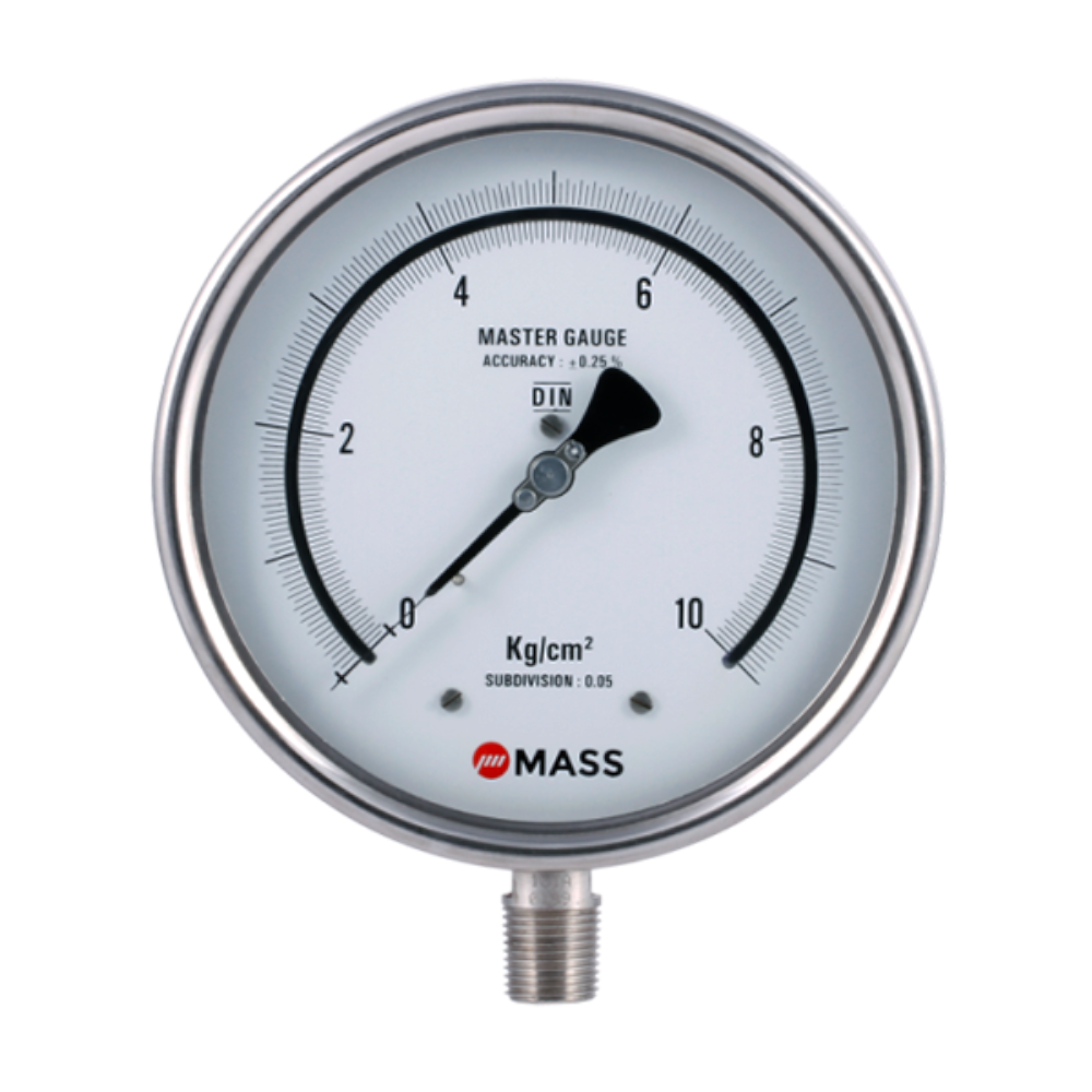 The MGS Master Pressure Gauge is a premium-grade instrument engineered for precise pressure measurement in testing and calibration environments. With an impressive accuracy of 0.25% and a wide range from vacuum to 15,000 psi (1,000 bar), it is ideal for test benches, calibration laboratories, and maintenance workshops. Built with rugged stainless steel, Monel, or Beryllium Copper, the MGS Gauge ensures durability and long-lasting performance. Its IP65 protection and user-friendly features, such as optional external zero adjustment and easy calibration access, make it a versatile tool for demanding applications.